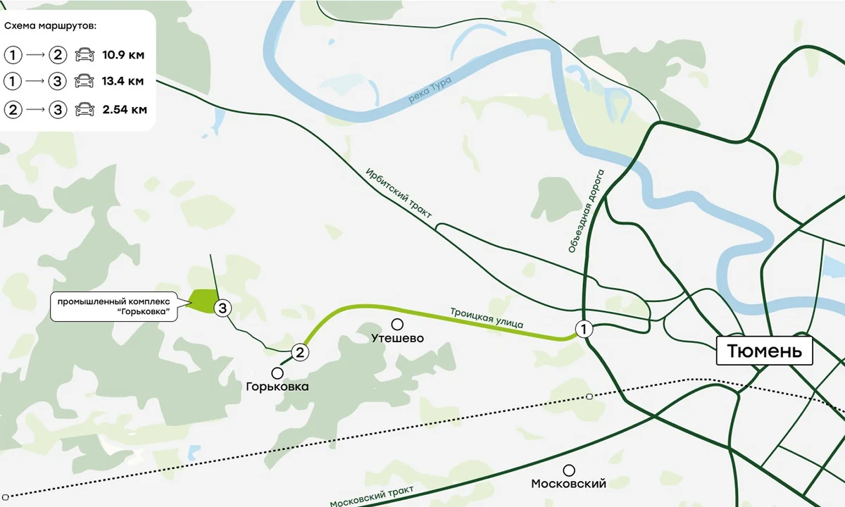 На текущий момент, данное направление – одно из самых актуальных для строительства производственных объектов и ведения бизнеса всех направлений деятельности.Географически находится к юго-западу от Тюмени, между Московским и Ирбитским трактом.